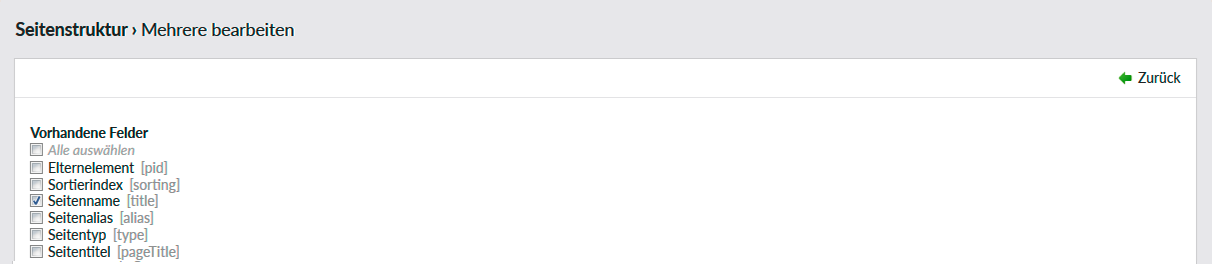 Haben Sie sich für die Option "Bearbeiten" entschieden, wählen Sie im nächsten Schritt die Felder, die Sie in allen ausgewählten Elementen bearbeiten möchten.