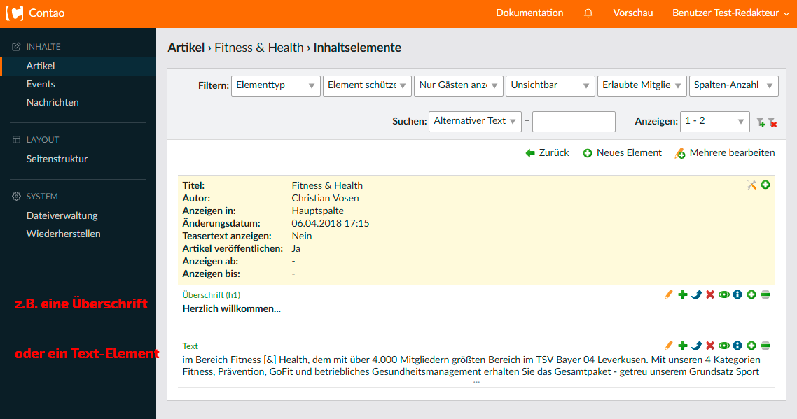 Inhaltselemente bearbeiten