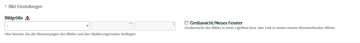 Sie können nun noch die Bildgröße und die Einstellung zur Lightbox vornehmen. Wählen Sie als Bildgröße eine für die Galerieansicht definierten Bildgrößen. Diese sind entsprechend benannt.