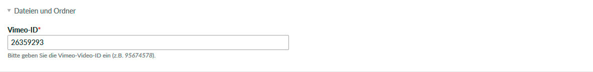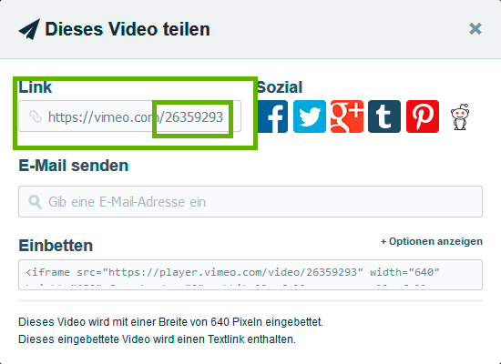 - Kopieren Sie die ID in die Zwischenablage und fügen sie diese dann in das Feld Vimeo-ID ein.