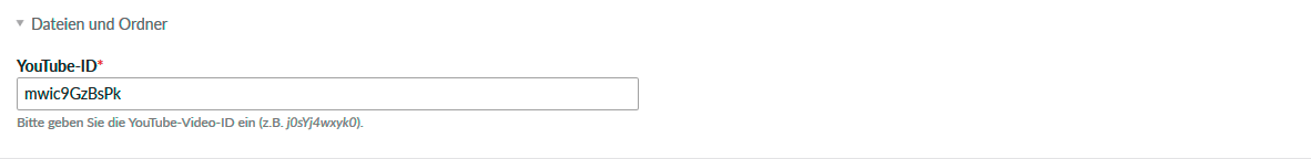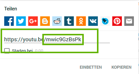 - Kopieren Sie die ID in die Zwischenablage und fügen sie diese dann in das Feld Youtube-ID ein.