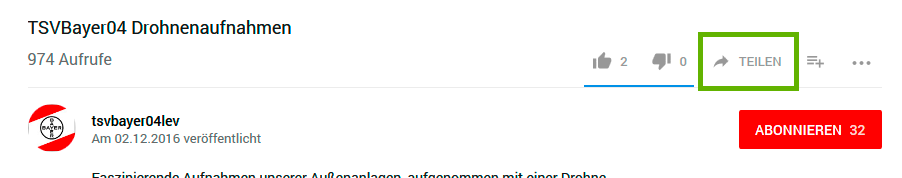 - Kicken Sie beim Video auf Teilen