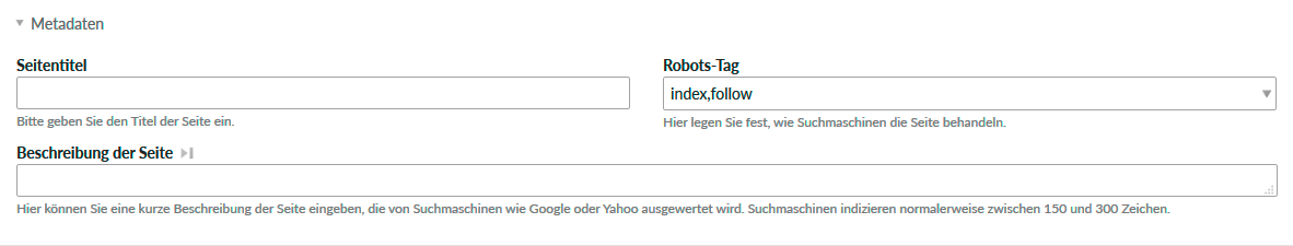 Tragen Sie hier nichts ein, übernimmt Contao automatisch den Seitennamen.