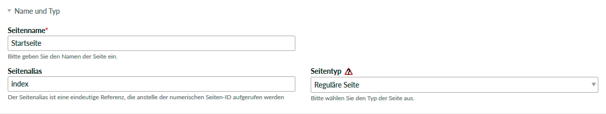 Hier legen Sie fest um welchen Seitentyp es sich handelt. Es gibt verschiedene Einstellungsmöglichkeiten, wie sie in den nächsten Abschnitten noch erfahren werden.