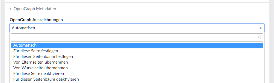 - Automatisch: Werden Einstellungen über eine Elternseite defineiert werden diese genommen, sonst wird nichts gesetzt