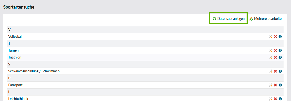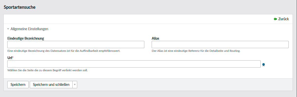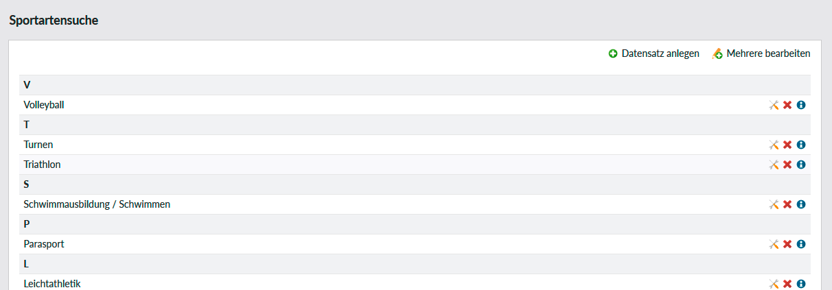Hier pflegen Sie die Verlinkungen, die in der Sportartensuche zum Einsatz kommen.
